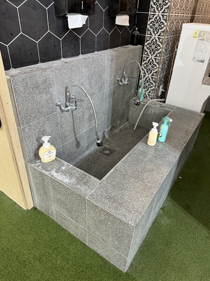 안쪽에 들어서면 이렇게 세면대와 세족실이 있는데, 여기도 휴지를 제공하고 있습니다.