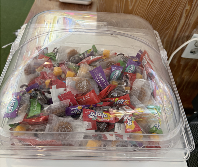 마지막으로 하이라이트인데, 여기는 이렇게 당 보충을 위한 간식도 제공을 하고 있습니다!