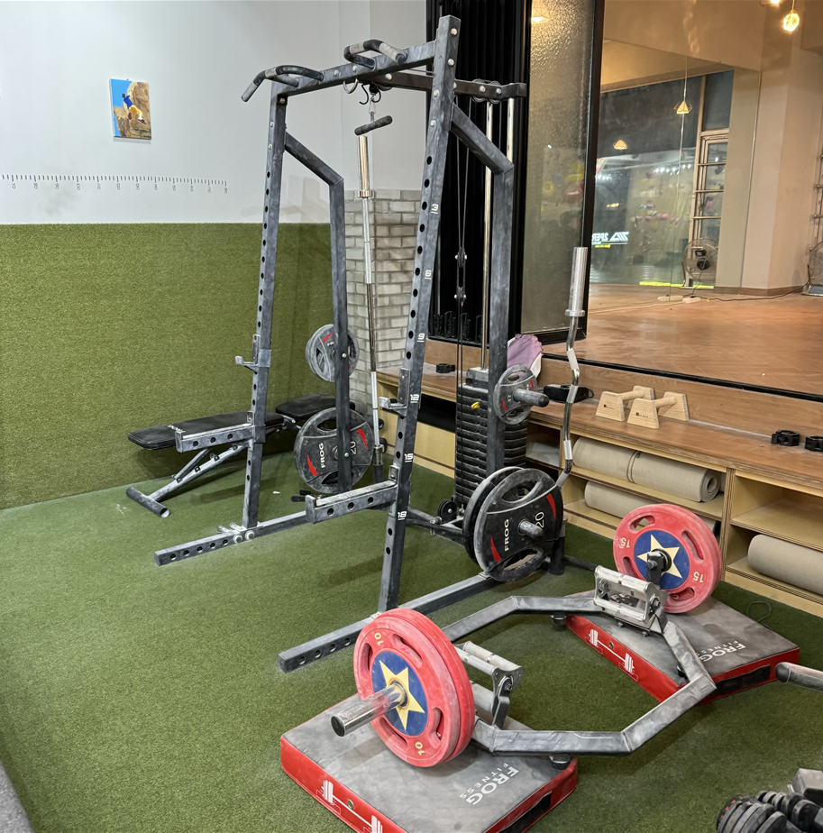 스트레칭존 앞에는 나름 헬스 기구들이 갖춰져있습니다. 저는 운동 끝나고 마무리로 푸쉬업만 좀 했네요.